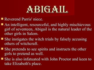 Akp rita yuliana terkini. Abigail says that the whole dancing in the woods. In The Crucible Miller demonstrates these vices through Danforth a prestigious judge that should represent the peak of human morality and reason.