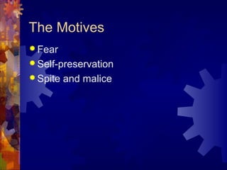 Arthur Millers The Crucible the act of self-preservation was the cause of the Salem Witch.