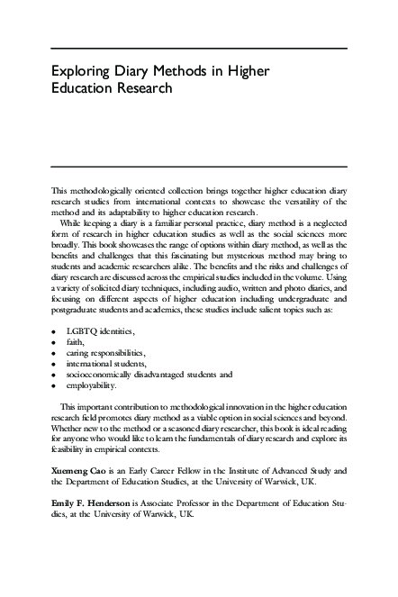 Pdf Exploring Diary Methods In Higher Education Research Fenella Somerville Academia Edu